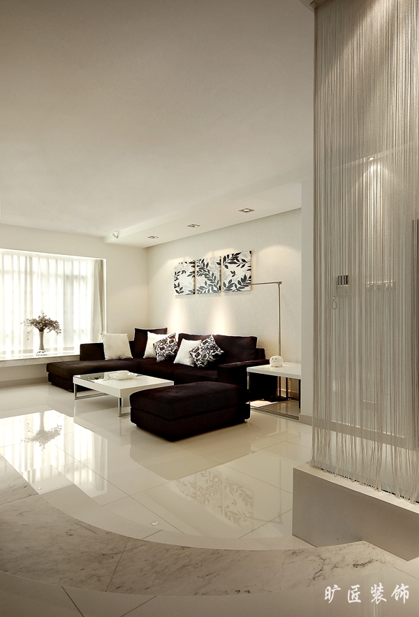 這是一個(gè)黑與白共同締造的光影世界。白色的質(zhì)感,黑色的沉穩(wěn),加上大理石、瓷磚、吊飾、燈光的共同裝飾效果,打造了一個(gè)極簡、現(xiàn)代化十足的光影的天地。開放式廚房和餐廳實(shí)現(xiàn)了空間上的聯(lián)通,整個(gè)廚餐廳變得寬敞大氣??蛷d也是通透明亮,整個(gè)居室的設(shè)計(jì)都彰顯了主人的前衛(wèi)的品位和熱情好客的個(gè)性。